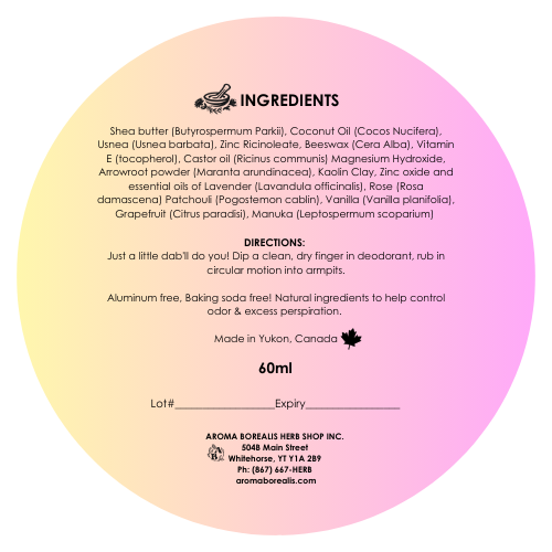 As with all Aroma Borealis deodorants, odor control comes from mineral and botanical action, not from blocking sweat.